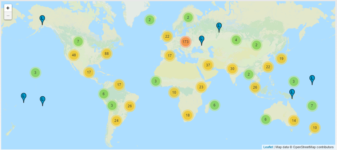 Para manter a disponibilidade da resolução de nomes em todo o planeta, cada um dos servidores raiz estão replicados em dezenas de cópias espalhadas por todos os continentes. A localização dos servidores raiz pode ser consultada no link http://root-servers.org/ Conforme a figura abaixo: