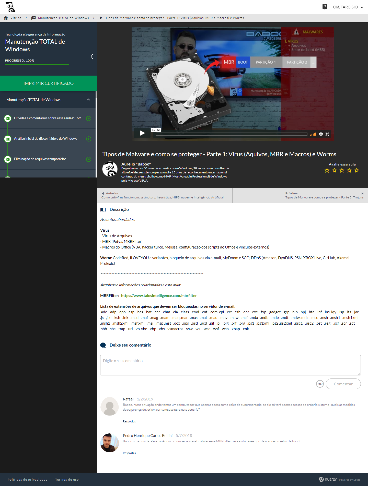 villa / PROFISSIONALIZANTES / BABOO - Manutenção TOTAL de Windows / 38 - Tipos de Malware e como se proteger - Parte 1 Vírus (Aquivos, MBR e Macros) e Worms